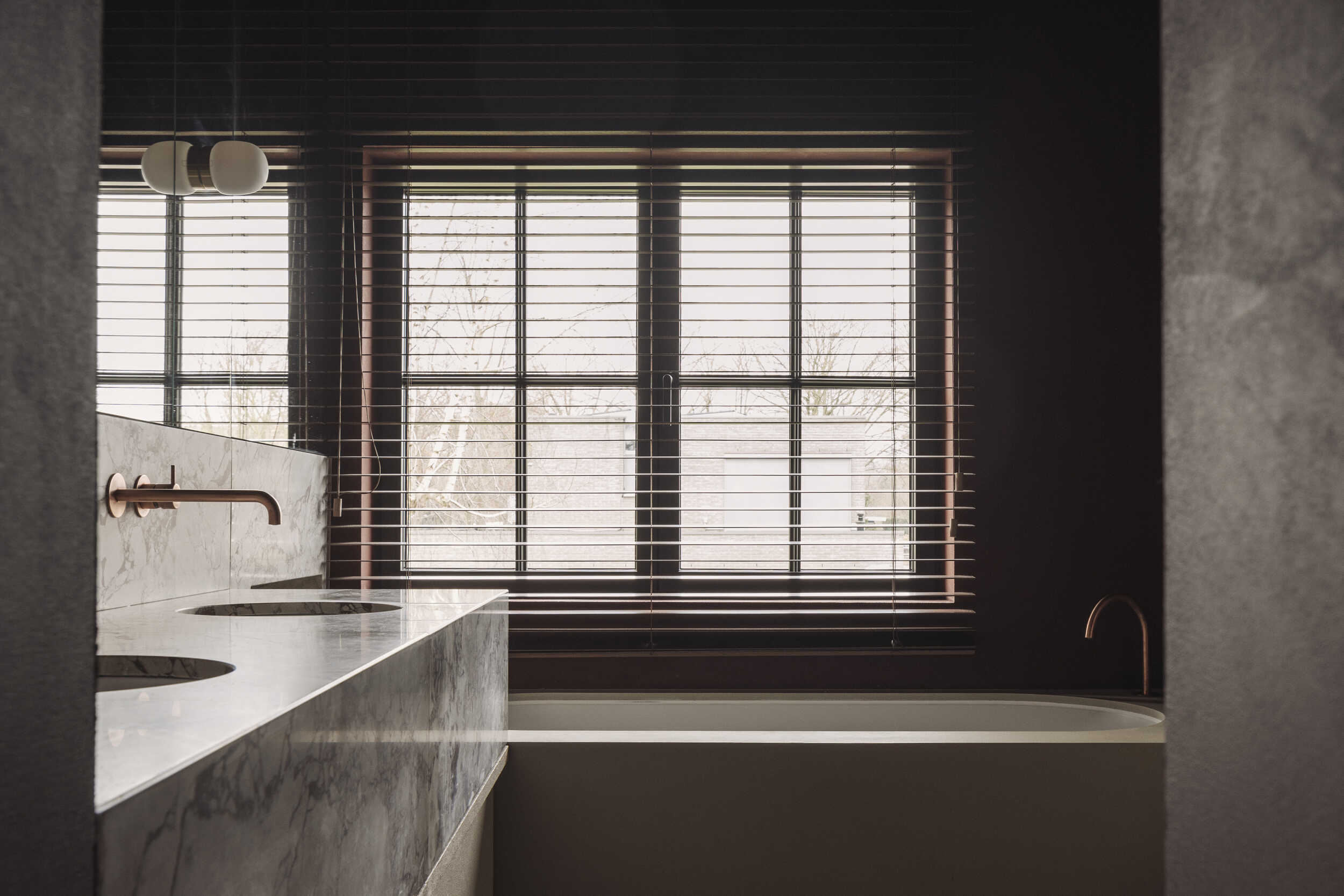 Decoratieve schildertechnieken brengen warmte en nuance in elke ruimte, van zachte wittinten tot diepe rood- en groentinten. De verlichting en schakelaars zijn zorgvuldig gekozen om sfeer en functionaliteit in balans te brengen, telkens perfect afgestemd op het interieur. Tot slot maken kamerhoge binnendeuren met massieve messing krukken, vervaardigd in ons atelier, het geheel compleet en sluiten ze naadloos aan bij de rest van de woning.